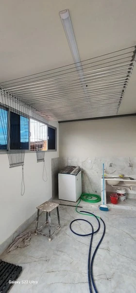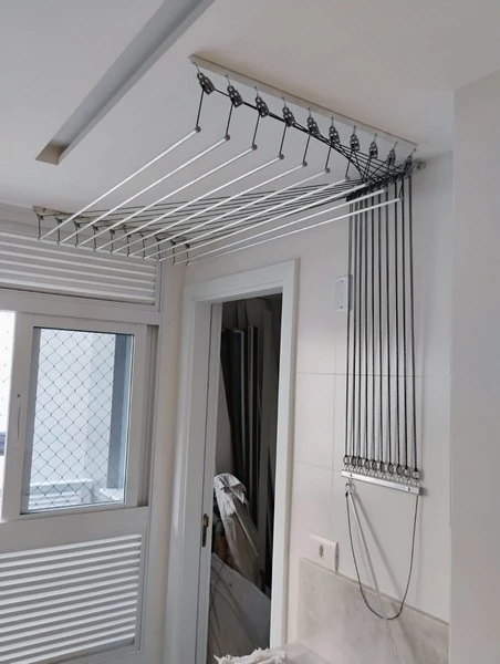 O diferencial é a instalação profissional, que assegura o funcionamento suave do mecanismo de roldanas e a fixação segura ao teto, suportando o peso das roupas molhadas.